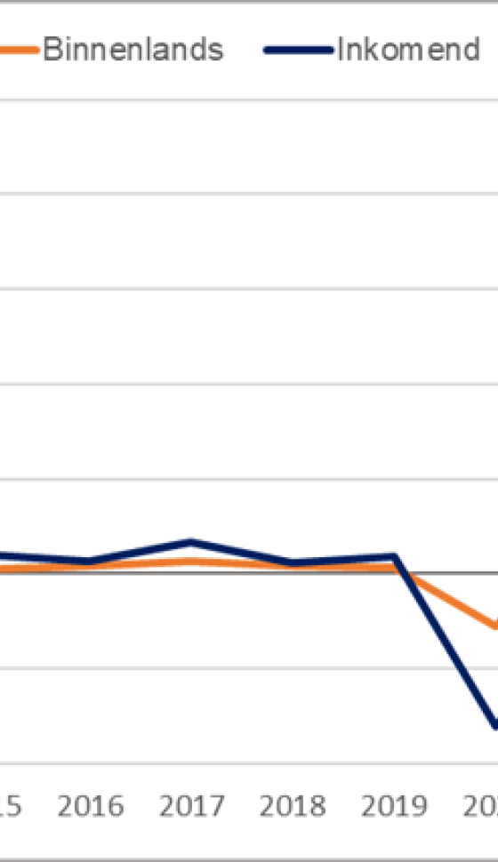 De verwachting is dat het aandeel van binnenlands en inkomend bezoek ongeveer gelijk wordt aan de situatie in 2019. Ofwel, 56% van de verblijfsgasten lijkt weer uit Nederland te komen in 2024 en 44% relateert aan inkomende bezoeken. Dat is identiek aan 2019. Echter het totaal aan gasten ligt met 51 miljoen 11% boven het niveau van 2019. Wanneer we kijken naar de herkomstregio's zijn er nog enkele verschillen: het aandeel voor Europa ligt in 2024 waarschijnlijk 0,6% hoger versus 2019. Dit gaat met name ten koste van Azië.